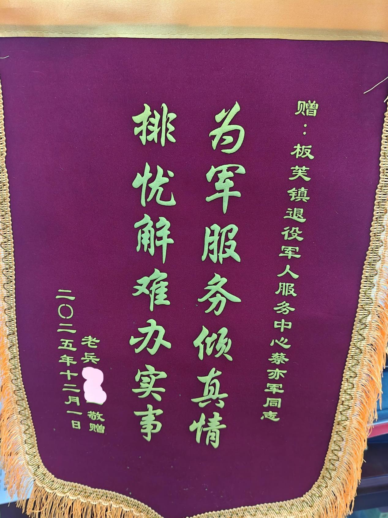 板芙镇退役军东谈主服务中心坚握以退役军东谈主为中心,精确落实帮扶挽回计谋,主动为不毛退役军东谈主纾困解难,把党和政府的关心送到心坎上。凭借贴心、暖心、经心的服务,收到服务对象施助的两面锦旗,以实确凿在的口碑,彰显了下层退役军东谈主服务事业的温度与力度。