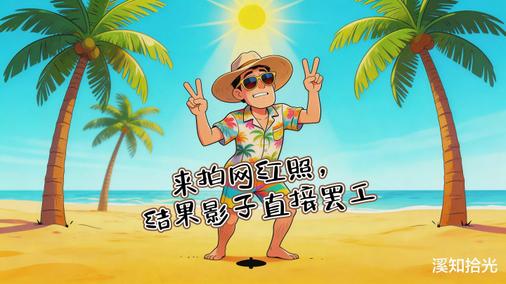 📸 旅客们兴冲冲地跑来拍"踩影子"的创意照,截止发现眼下唯有一团无极的污渍,像被太阳踩扁的蟑螂。